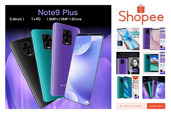 Smartphone Note 9 5,8 Polegadas Tela Grande 1 + 4G Memória Dual Card.
